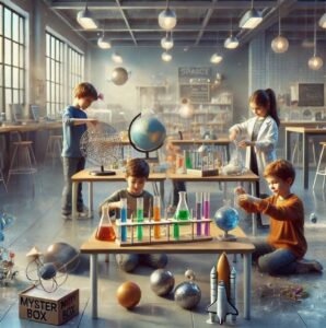 Naast het onderzoeken en ontwerpen zullen de kinderen ook korte experimenten uitvoeren, creatieve uitdagingen en out-of-the-box opdrachten oplossen. Ze leren hypotheses opstellen, experimenteren en reflecteren. Denk bijvoorbeeld aan proefjes als “wat gebeurt er als je afwasmiddel, azijn en bakpoeder mengt?” of het maken van iets dat helpt om een propje papier van de grond te rapen met behulp van beperkte materialen uit een mystery bag.